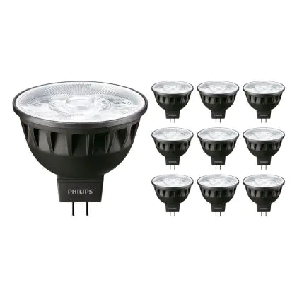 Confezione Multipack 10x Philips Master LED Faretti GU5.3 MR16 7.5W 500lm 36D - 930 Luce Calda | Miglior resa cromatica - Dimmerabile - Sostitutiva 50W