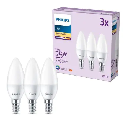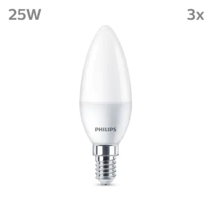 Confezione Multipack 3x Philips Bulbo LED E14 Candela Ghiaccio 3W 250lm - 827 Bianco Molto Caldo