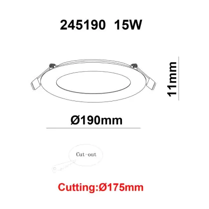 | Nome del fabbricante | White label LED Downlight Round UltraSlim 15W 1200lm 840 CutoutØ175mm FrameØ190mm | |