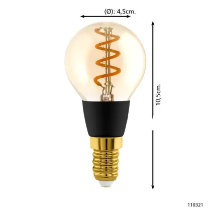 La lampada Eglo Connect.Z Smart LED Sferica E14 Filamento Ambra 4.9W 320lm - 827-865 Regolabile Bianca | Dimmerabile - Sostitutiva 25W è il sostituto perfetto per le tue vecchie lampade 25W con attacco a vite piccolo E14 grazie alla sua tecnologia LED. Passare a LED ti offrirà molti vantaggi!