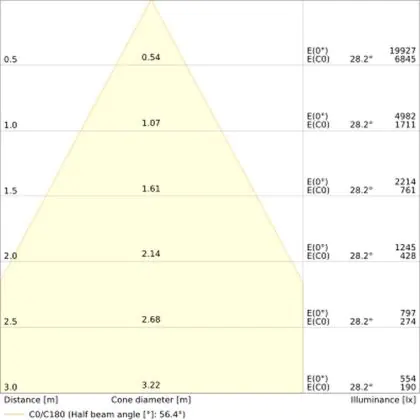 L'apertura del fascio luminoso indica l'angolo del fascio di luce proveniente da una lampada o lampadina. Si misura in gradi (D) e più piccolo è l'angolo, più piccola è l'apertura del fascio di luce.