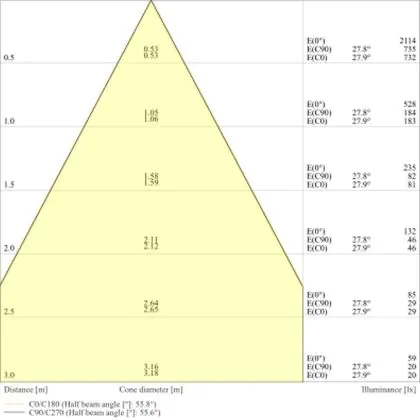 L'apertura del fascio luminoso indica l'angolo del fascio di luce proveniente da una lampada o lampadina. Si misura in gradi (D) e più piccolo è l'angolo, più piccola è l'apertura del fascio di luce.