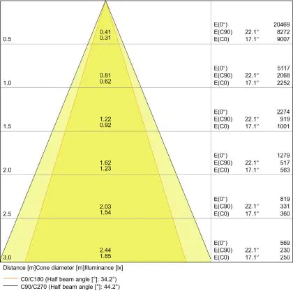 L'apertura del fascio luminoso indica l'angolo del fascio di luce proveniente da una lampada o lampadina. Si misura in gradi (D) e più piccolo è l'angolo, più piccola è l'apertura del fascio di luce.