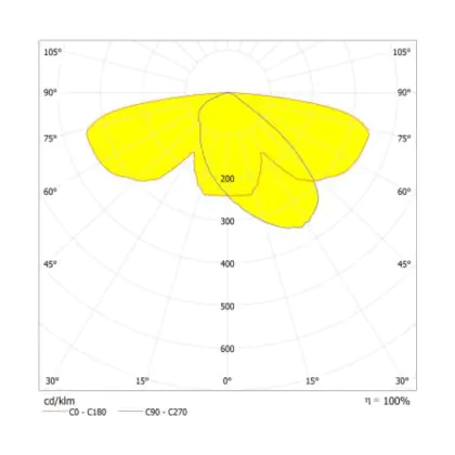 L'alloggiamento impermeabile di questa sorgente luminosa non è l'unica ragione per cui è perfetta per l'uso all'aperto. Infatti bisogna considerare anche la distribuzione della luce di questa lampada stradale, che ha apertura del fascio luminoso di 165x65° ed emette luce di colore 3000K - 4000K CCT.