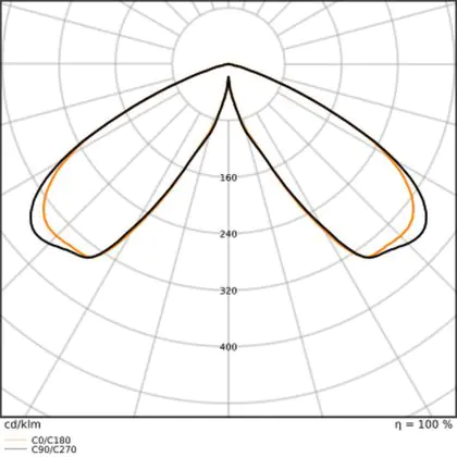 L'alloggiamento impermeabile di questa sorgente luminosa non è l'unica ragione per cui è perfetta per l'uso all'aperto. Infatti bisogna considerare anche la distribuzione della luce di questa lampada stradale, che ha apertura del fascio luminoso di 140° ed emette luce di colore .