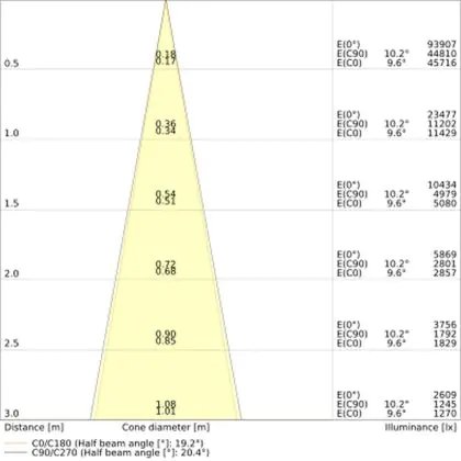 L'apertura del fascio luminoso indica l'angolo del fascio di luce proveniente da una lampada o lampadina. Si misura in gradi (D) e più piccolo è l'angolo, più piccola è l'apertura del fascio di luce.