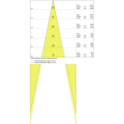 L'apertura del fascio luminoso indica l'angolo del fascio di luce proveniente da una lampada o lampadina. Si misura in gradi (D) e più piccolo è l'angolo, più piccola è l'apertura del fascio di luce.