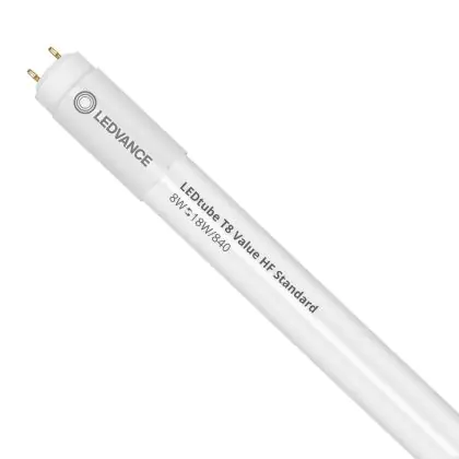 Il Ledvance Tubo LED T8 Value (HF) Standard Output 8W 900lm - 840 Bianco Freddo | 60cm - Sostitutiva 18W è l’alternativa perfetta per il tubo fluorescente standard 18W nelle plafoniere con un reattore. Con questo tubo LED hai una garanzia di una vita media utile molto lunga e 5 anni Lampadadiretta.it di totale garanzia. .