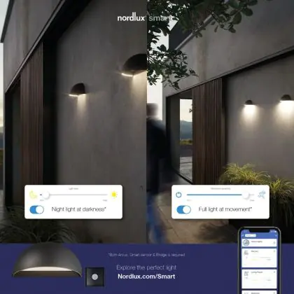 Descrizione Nordlux Arcus Smart LED Luce da parete Grigio 9.5W 440lm 148D – 827 – Bianco Molto Caldo | Dimmerabile – IP54