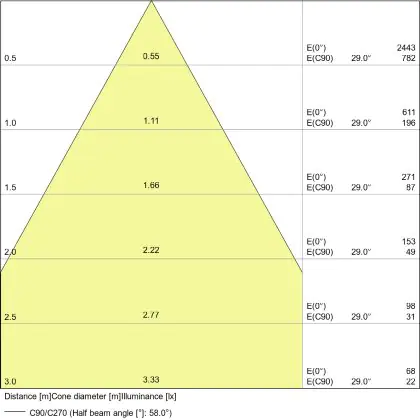 L'apertura del fascio luminoso indica l'angolo del fascio di luce proveniente da una lampada o lampadina. Si misura in gradi (D) e più piccolo è l'angolo, più piccola è l'apertura del fascio di luce.