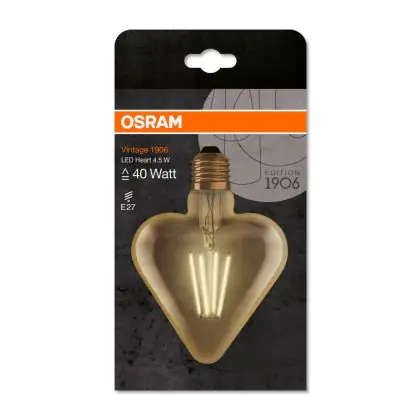 La Osram Vintage 1906 LED E27 Heart Filamento Oro 4.5W 470lm - 825 Bianco Molto Caldo | Sostitutiva 40W è la perfetta sostituzione per la tua lampada convenzionale 40W con attacco E27 grazie alla sua tecnologia LED. Passare a LED ti offrirà tanti vantaggi!