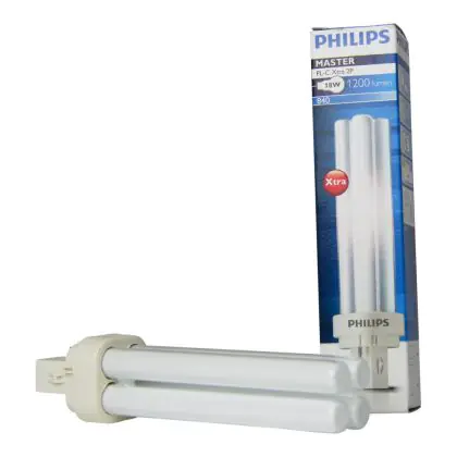 Le Philips PL-C Xtra 18W 840 2P (MASTER) sono lampade fluorescenti compatte con contenuto di mercurio basso dotate di attacco G24d-2 a 2 pin (perni). La potenza di queste lampade fluorescenti é pari a 18W. Quando decidi di sostituire le tue vecchie lampade fluorescenti compatte, assicurati di mantenere medesimo attacco, numero di pin (perni) e stessa potenza: in questo modo non avrai problemi nell'installazione. I vantaggi di tali lampade sono diversi: in particolare, presentano una vita estremamente lunga (in media 16.000 ore), molto più lunga rispetto alle lampade della linea Philips PL-C classica, e consentono un risparmio energetico importante.