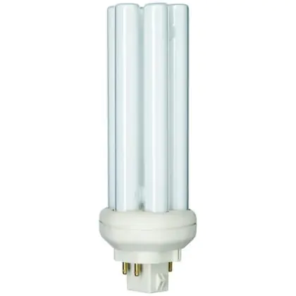 Le Philips PL-T 32W 840 4P (MASTER) sono efficienti lampade fluorescenti compatte a basso contenuto di mercurio. Sono molto efficienti e garantiscono performance ottimali di illuminazione per periodi di accensione brevi o lunghi. Tali lampade fluorescenti compatte sono dotate di attacco GX24q-3 e la base presenta 4 pin (perni). La potenza delle stesse é pari a 32W. Quando sostituisci le tue lampade fluorescenti compatte é fondamentale scegliere le nuove con il medesimo attacco, numero di pin (perni) e potenza di quelle che stai attualmente usando altrimenti non sarai in grado di installarle. Questa lampade presentano una temperatura di colore di 4000K, che corrisponde ad una luce bianca fredda. L'indice di resa cromatica é superiore a 80Ra. Queste lampade a basso consumo sono in classe efficienza energetica 'B' . La vita media é lunga, 13.000 ore in media.