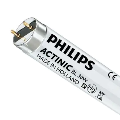 I Philips MASTER TL - D Actinic BL 30W - Ultravioletto | 44cm sono i tubi più comuni e tra le lampade più vendute nel mondo. Questi tubi T8 (TL-D per Philips) hanno una lunghezza la quale corrisponde alla potenza di 30W.