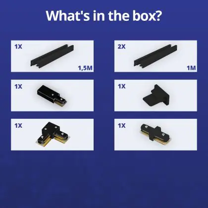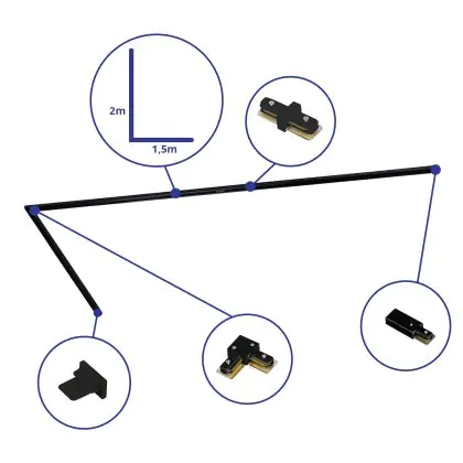 | Nome del fabbricante | Complete L shaped 1-Phase Track Set Black – 1,5 x 2 meter incl. End Cap, Power Connector and L -Con | |