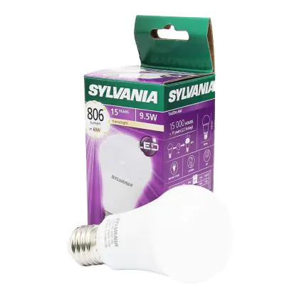 Descrizione Sylvania ToLEDo E27 Pera Ghiaccio 9.5W 806lm - 827 Bianco Molto Caldo | Dimmerabile - Sostitutiva 60W